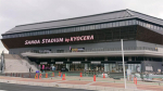 JR亀岡駅前に新スタジアムが落成したのです。