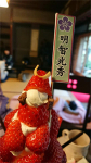大量のイチゴで鎧兜をかたどったパフェまでいただきました。