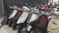 「徳島市二軒屋町にあるバイク販売店にきました。店頭には多くの原付バイクが並んでいます」