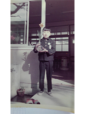 幼稚園お遊戯会の高橋裕。この頃「みんな持ってるもん~」で買って貰おうとして失敗していた。