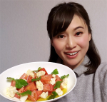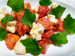 今回は、カマンベールチーズと うちの庭で育った三つ葉でカプレーゼ風にして頂きました♪ (バジルがなかったもので...)