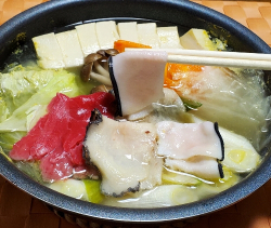 脂のりが良く食感の良い皮の3種類をしゃぶしゃぶで味わえます(^^)