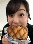 熱血テレビの中継後、さらにメロンパンを頬張りました。