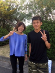 撮影の時はいつもピースサインをされる藤本選手を真似て。