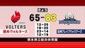 12日の熊本ヴォルターズホーム第2戦、1勝をあげたいヴォルターズでしたが、第1Qから先行されると差を詰められず、65対83で敗れました。