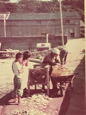 摘んだお茶の葉や椎茸をゴザに広げての天日干し、家族総出で行う、家中の畳干しも庭でやっていました。ほとんど作業場でした。