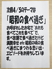 さて、次週3/29のテーマは「昭和の屋台」で行きましょう。